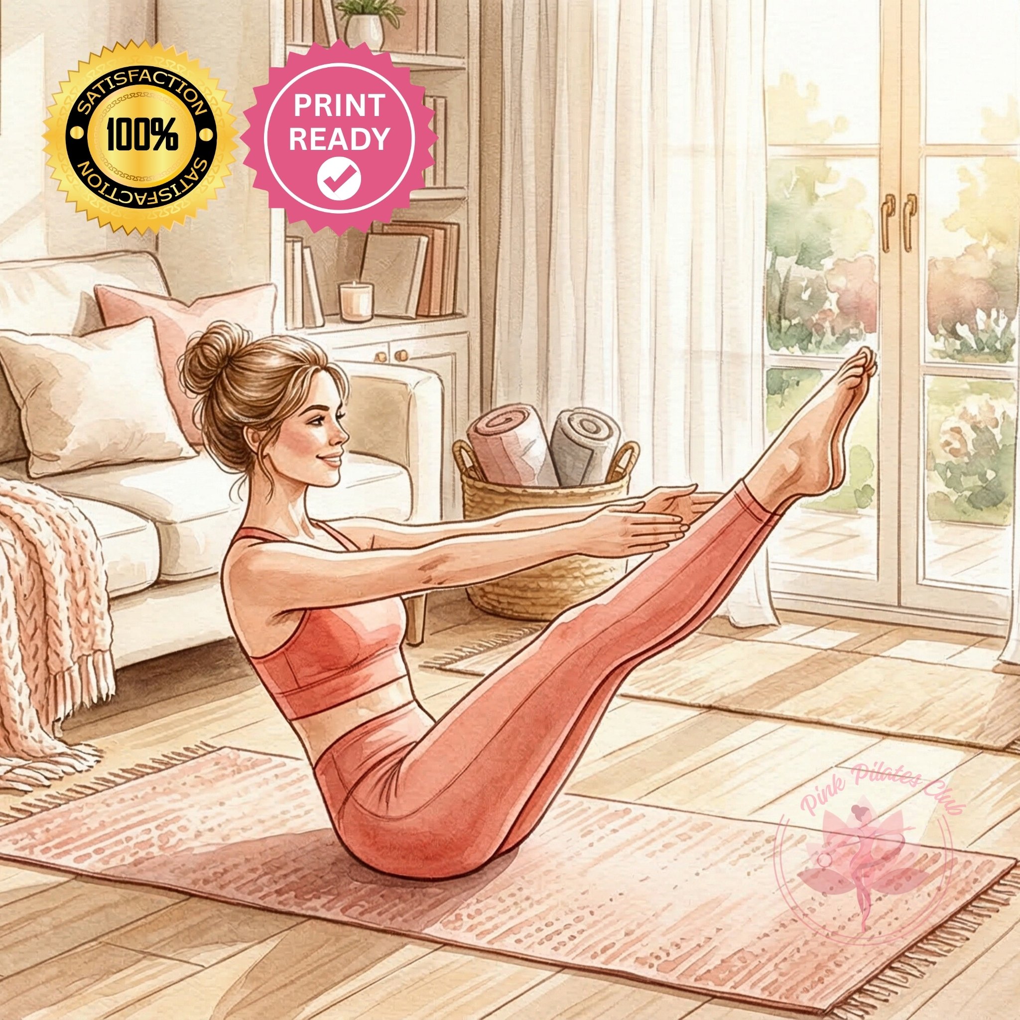 A 6-week mat Pilates programme with 30 exercises, progressive sessions, and zero equipment required. Your body is the only machine you need.